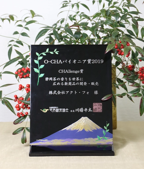 - 鳥取大学の浦上克哉教授による天然緑茶アロマの認知症予防効果試験実施および筑波大学スポーツ医学部の久野教授による緑茶アロマの抗酸化試験実施。