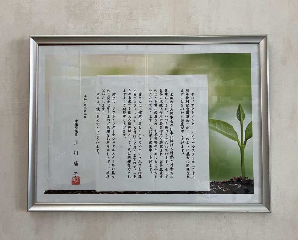 スクール25周年講演会の開催に際し、衆議院議員の上川陽子様よりご祝辞を頂戴しました。
